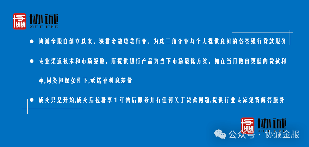 提供的服务一、专业的N团队Q免Ҏ(gu)供客户专业的融资Q徏好客戯资成本,做到高效、便捗?br/> 提供的服务二、根据客L(fng)需求给予ABD{融资方案,l予客户选择性,Ҏ(gu)自n需求去?xi)选合适的融资Ҏ(gu)Qؓ(f)企业开源节?br/> 提供的服务三、协诚金服ؓ(f)企业与银行构{了(jin)一座金桥Q最快可做到1时放款Q大大节U了(jin)旉的同Ӟ也保障了(jin)资金的可靠性?/p>
